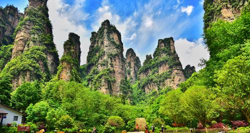 下午安排:乘百龍?zhí)焯菹律?單程費(fèi)用已含)。游覽山水畫卷——【十里畫廊景區(qū)】(游覽約40分鐘)乘坐觀光小火車游覽十里畫廊(往返費(fèi)用已含),沿途欣賞天臺(tái)三姐妹峰、向王觀書、黃昏戀、壽星迎賓、采藥老人、錦鼠觀天、猛虎嘯天等景點(diǎn);十里畫廊長約五公里,兩邊林木蔥蘢,野花飄香;奇峰異石,千姿百態(tài),像一幅幅巨大的山水畫卷,并排懸掛在千仞絕壁之上,使秀美絕倫的自然奇觀溶進(jìn)仙師畫工的水墨丹青之中。漫步金鞭溪感受清涼夏意。