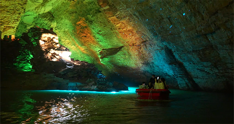 地理位置:張家界市武陵源區(qū)索溪峪鎮(zhèn)推薦理由:洞內(nèi)恒溫16-18℃,一入洞門,寒氣撲面。洞內(nèi)有鐘乳石在光影中若隱若現(xiàn),仿佛踏入神秘龍宮,還可以乘船游覽暗河——響水河,欣賞洞內(nèi)的奇特景觀。