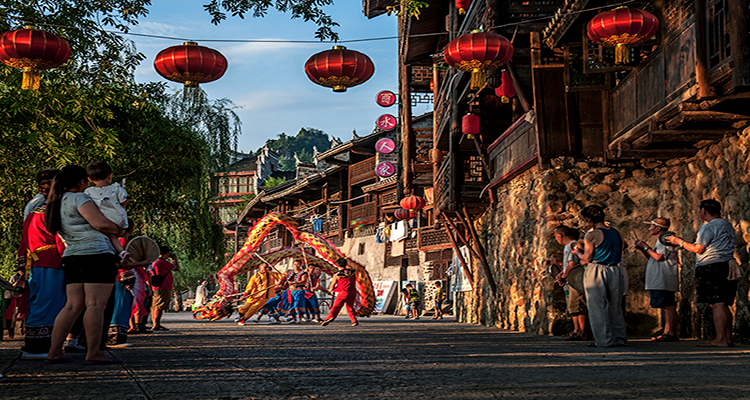 ──瑤族團圓節(jié),是為紀念瑤族先祖六男六女受封婚配,團圓成親之日。每年的農歷七月十五日,瑤人殺牲慶賀,喜氣洋洋。入夜,敲鑼打鼓,到村外燃燒篝火,舞動火龍火獅,圍堂歌舞,直到深夜甚至通宵達旦。
