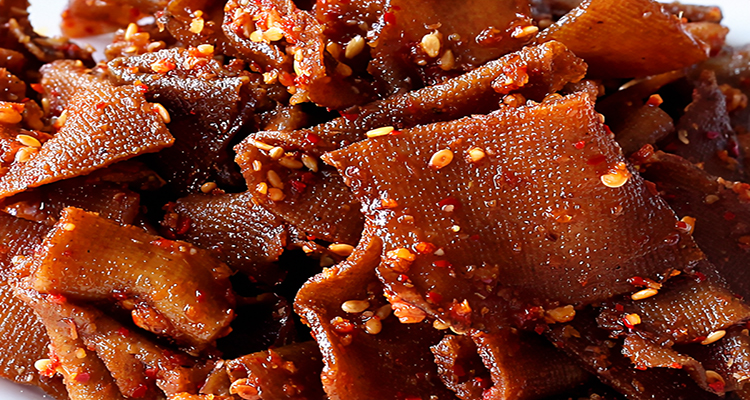 平江醬干也叫長(zhǎng)壽醬干,這道美食起源于岳陽(yáng)市長(zhǎng)壽街,是清咸豐年間的百歲老人何維豐首創(chuàng),經(jīng)過(guò)了18道加工工序,三鹵三烘制作而成,做出來(lái)的豆干烏黑油亮,充分吸收了鹵水的味道,紋路光滑,耐嚼爽口,有湘西獨(dú)有的醬香味。