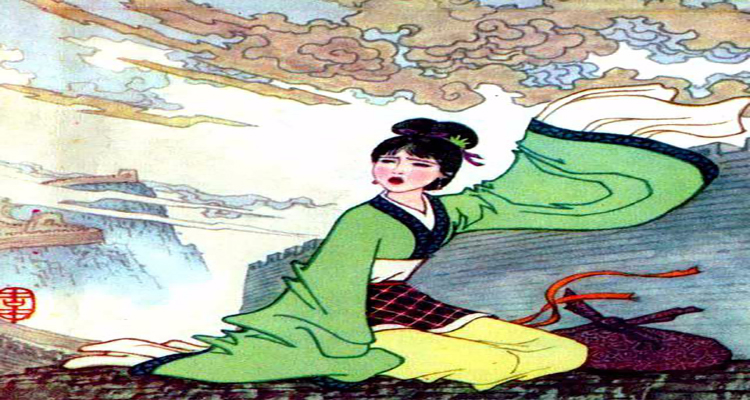 相傳嘉山腳下有一姜姓老者,生有一女,取名孟姜。孟姜成人后,一日在屋后小池塘里洗澡,被逃長(zhǎng)城役而路過(guò)此地的范喜郎偷窺。兩人一見傾心,私訂終身。不想新婚燕爾,范喜郎還是被官府抓走,押送邊關(guān)修筑長(zhǎng)城。由于不堪重勞,范喜郎很快死去,并被填埋在長(zhǎng)城之下。孟姜在家天天望夫歸來(lái)。過(guò)數(shù)年,孟姜決心親往長(zhǎng)城尋覓,哭倒長(zhǎng)城,獲夫骸骨,背負(fù)還鄉(xiāng),死于返鄉(xiāng)途中。鄉(xiāng)人感其事跡,修廟供奉不絕。