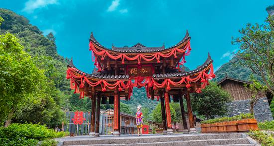 吉首市德夯風景區(qū)地處云貴高原邊緣,位于湘西土家族苗族自治州首府吉首市西郊,距吉首市24公里。德夯旅游區(qū)以矮寨為中心,東到堂樂洞、西到大龍洞,南從武山、蓮臺山開始,北到流紗瀑布(全國落差最高的流紗瀑布和瀑布群),小龍洞,總面積約190平方公里。自矮寨鎮(zhèn)洞溪上行4公里至德夯苗寨,沿岸筒車、水輾、古渡、小舟,伴以苗家吊腳樓,一派田園詩情。九龍溪穿寨而過,四周山色清幽,懸崖如削......在青山綠水間,點綴著一幢幢灰瓦石基吊腳樓,一條條光滑的石板路,一座座精巧的石拱橋,一群群赤足紅裝的浣紗苗女。還有那古老的石碾和筒車,在水力的帶動下,咕咕嚕嚕、咿咿呀呀,不知疲倦地旋轉(zhuǎn)著,一派田園詩情,這就是德夯苗寨。由于這里是純苗區(qū),苗族人民的風俗習慣對德夯影響很大,苗族人民的四月八、跳鼓舞、三月三歌會、趕秋、接龍、推牛以及苗嶺情歌,無不吸引著中外游客。因此,古樸優(yōu)雅的苗族風情又成為德夯人為景觀的特色?!》灿稳藖淼竭@里,都被德夯神奇的自然風景和濃烈的苗族風情所陶醉,令人有詩贊曰:一人盤古到如今,佳境蓬萊何處尋?莫向仙神詢?nèi)ヂ?,湘西德夯醉游人?br/>