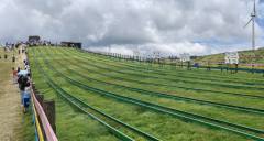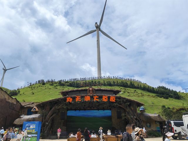 仰天湖大草原景區(qū)由仰天湖與大草原兩個板塊組成,草原腹地的仰天湖是第四紀(jì)冰川期饋贈的一個死火山口,四季不斷流的泉眼滋養(yǎng)著整片草原。草原山脊上,矗立著蜿蜒百里、高聳入云的動力風(fēng)車,白色風(fēng)車與綠草相映成趣,構(gòu)成了獨特的草原勝景。