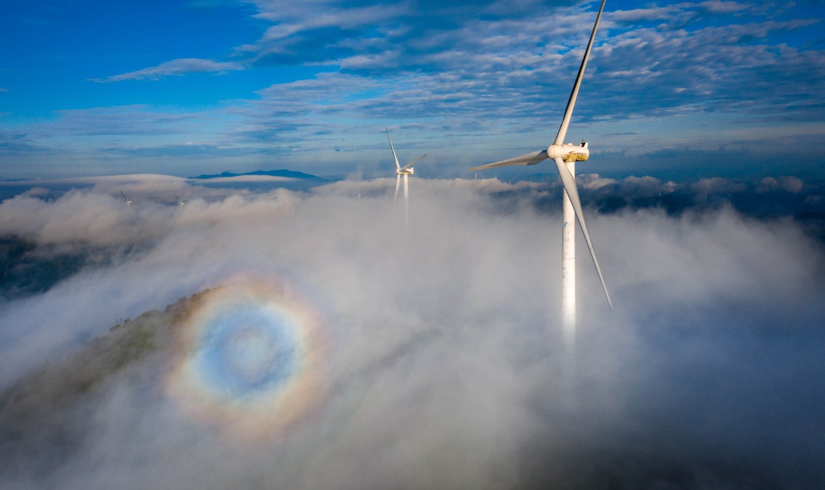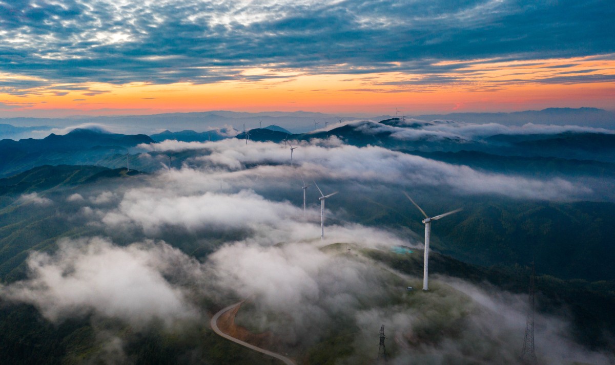 高聳入云的“大風(fēng)車”沿著山脊蜿蜒數(shù)百公里,高聳入云,猶如一條條巨龍騰空遠(yuǎn)去,蔚為壯觀。