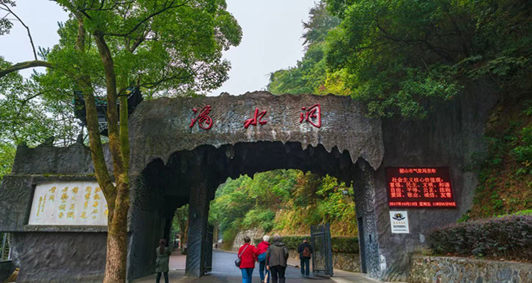 滴水洞長約2.8公里,洞內有小溪,曲曲彎彎,幽壑口朝東北而開。小溪沿岸林木繁茂,挺拔的松林中夾雜著茂密的楠竹,而上百種野花漫山遍野地生長著。這里的珍貴林木有銀杏、女貞、鐵樹等30多種,這里的花卉有映山紅、臘梅、芙蓉、月季、菊花等上百種,這里的珍貴藥材有金銀花、甘草、沉香、白果等20余種,境幽景優(yōu)是滴水洞幽壑的一大特點,人在景中如置身仙境。滴水洞正式對外開放,并陸續(xù)修造了許多旅游景點與設施。滴水洞門樓,依山造勢,頂部垂著深灰色的石鐘乳,中覆著紫藤、絡石、烏蘿,古趣盎然,上題“滴水洞天”4個朱紅大字。門樓建在水濱崖邊,韶山水庫波光粼粼,巖邊松柏勁拔,給游人以先聲奪人之感;加上守衛(wèi)者仍保留全副武裝,仿佛毛澤東仍在洞中安歇。進得門樓,臨水一亭翼然,倚欄俯仰,只見山風拂面;又見游道右側山巖石壁上,倏然從松樹間躍出靈氣飛動的“滴水洞”3字,正是毛澤東的手跡。道邊的黑色山體上,嵌著一塊塊名人留言的青石碑。漫步滴水洞游道,仿如置身詩情畫意中,松與竹,青蔥得癢人心肺,山花、野鳥、人面、歌聲,使人陶醉。