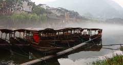 沱江河是古城鳳凰的母親河,她依著城墻緩緩流淌,世世代代哺育著古城兒女。坐上烏蓬船,聽著艄公的號(hào)子,看著兩岸已有百年歷史的土家吊腳樓,別有一番韻味。順?biāo)拢┻^虹橋一幅江南水鄉(xiāng)的畫卷便展現(xiàn)于眼前:萬壽宮、萬名塔、奪翠樓……一種遠(yuǎn)離塵世的感覺悠然而生。沱江的南岸是古城墻,用紫紅沙石砌成,典雅不失雄偉。城墻有東、北兩座城樓,久經(jīng)滄桑,依然壯觀?! °铀宄?,城墻邊的河道很淺,水流悠游緩和,可以看到柔波里招搖的水草,可以撐一支長(zhǎng)篙漫溯。沿沱江邊而建的吊腳樓群在東門虹橋和北門跳巖附近,細(xì)腳伶仃的立在沱江里,象一幅永不回來的風(fēng)景。